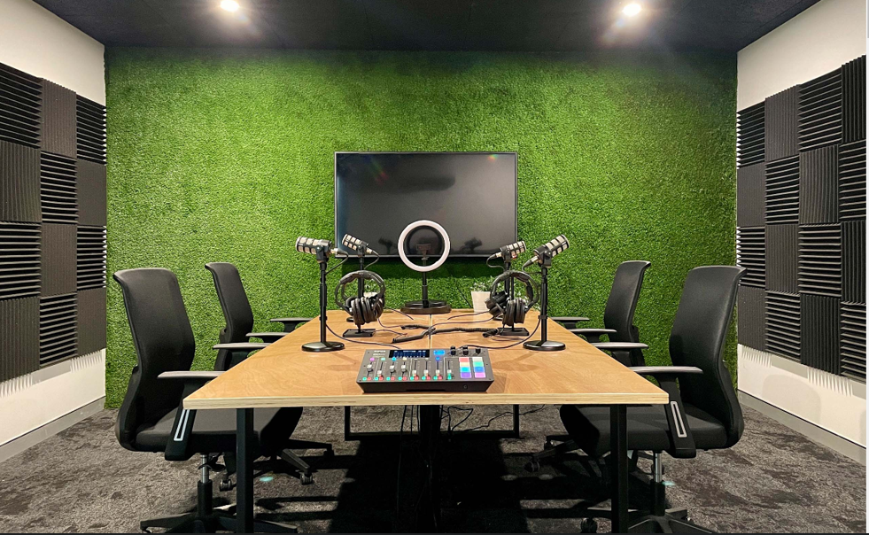 Dive into the world of podcasting with our fully equipped podcast room, designed to accommodate up to four guests. With quality recording equipment and a comfortable setting, your podcast sessions will be seamless and professional.